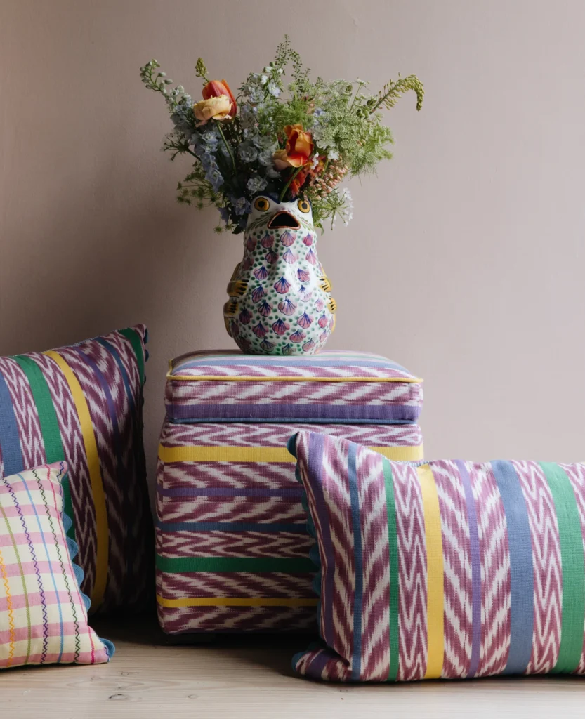 Founded by Caroline Downing Nadel, Wicklewood was born from a love of artisanal craft and a desire to create homes that tell stories. Her vision is one of conscious design, pieces that are made to be loved and lived with, blending heritage influences with modern ease. The shop feels like a joyful fusion of pattern and texture: handwoven rugs from India, block-printed cushions from Guatemala, playful table linens, and decorative accessories that bring a home to life without shouting for attention.